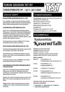 Turun Seudun TST ry:n uusin Viikkotiedote on luettavissa Toimintakeskuksen ilmoitustaululla ja ladattavissa tästä artikkelista.