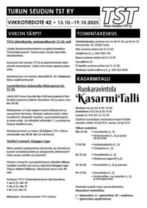 Turun Seudun TST ry:n uusin Viikkotiedote on luettavissa Toimintakeskuksen ilmoitustaululla ja ladattavissa tästä artikkelista.
